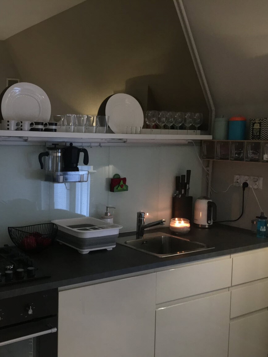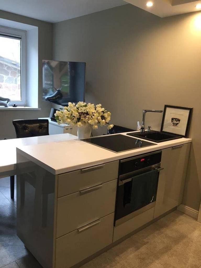 Да паслуг Гасцей кухня з халадзільнікам, плітой, кухоннай зонай,